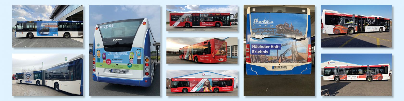 Für alle Ihre Botschaften können wir Ihnen das richtige Format im richtigen Zeitraum anbieten. Möchten Sie Ihre Marke aufbauen oder festigen? Dann empfehlen wir Ihnen eine großformatige und langfristige Beklebung auf unseren Fahrzeugen. Möchten Sie für einen kurzen Zeitraum eine Aktion bewerben? Dann entscheiden Sie sich für ein kleines Format, gerne auch im Innenraum.