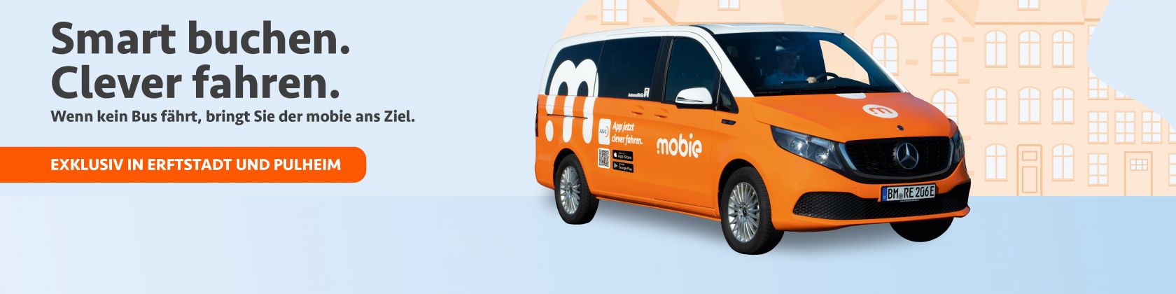 Nach der erfolgreichen Pilotphase in Erftstadt ist Pulheim ab 1. April 2023 das zweite Gebiet, in dem der mobie fährt. Weitere Städte werden bald folgen.